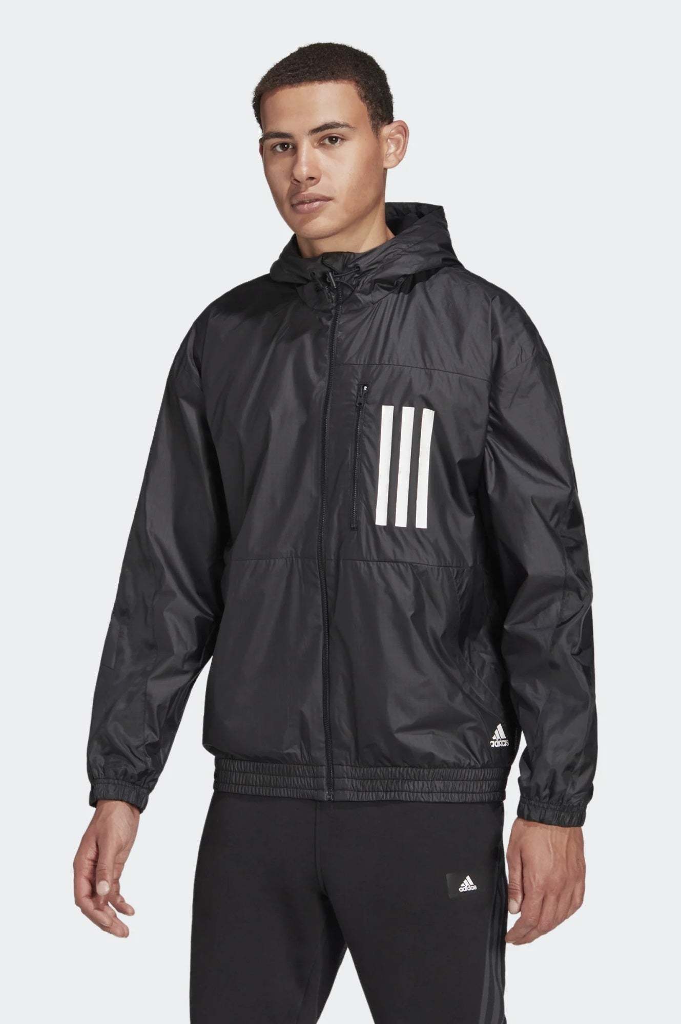 The forecast keeps changing, but your plans are set. Head out in this adidas windbreaker and keep your agenda rolling even when cold weather arrives. Soft fleece holds the warmth in while WIND.RDY protects you against the cool, windy air. The relaxed fit means it's easy to layer for longer journeys. This product is made with Primeblue, a high-performance.