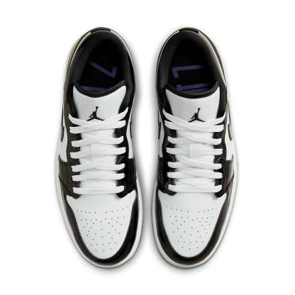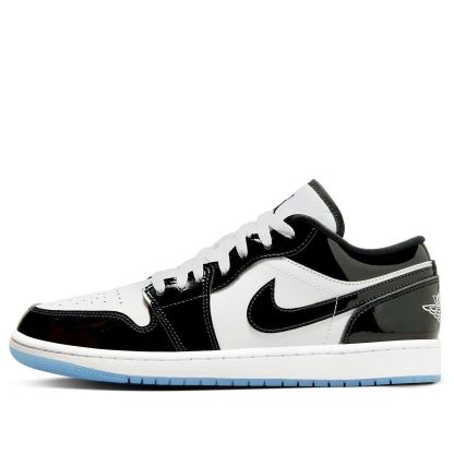 The Air Jordan 1 Low SE Concord utilizes classic design elements in a modernized look. Featuring a combination of black patent leather and white leather uppers, this stylish sneaker is further detailed with the addition of a translucent blue outsole and a white Air Jordan Wings logo placed on the heel. With these sleek upgrades, this timeless classic will have everyone talking. Whether you're a longtime Air Jordan fan or just getting into sneakers, be sure to add this specially edition sneaker to your collection today.