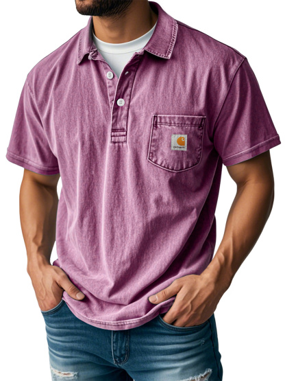 Men's Retro Lapel Button Pocket Casual Short Sleeve POLO Shirt