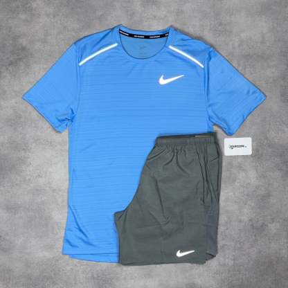 Miler T-Shirt University Blue & Grey/Black 7” Challenger/Flex Short Set