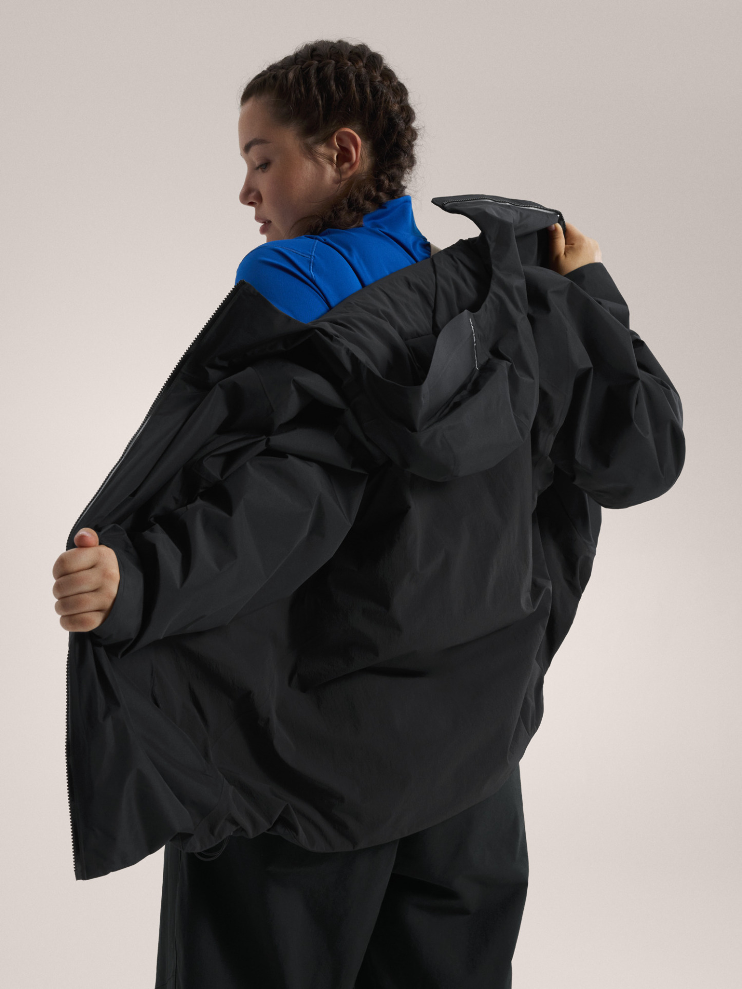 Perfect balance of targeted warmth, weather protection, ventilation, and stretch in a hoody made for winter hikes and mountain living. Hybrid Mapping Technology puts a PFAS-free GORE-TEX fabric on the body and sleeves. Breathable Fortius 1.0 softshell on the back and under the arms adds ventilation and stretch. Coreloft™ insulates, the warm, low-profile hood adjusts to move with your head, and the articulated patterning works with the stretch for freedom of movement.