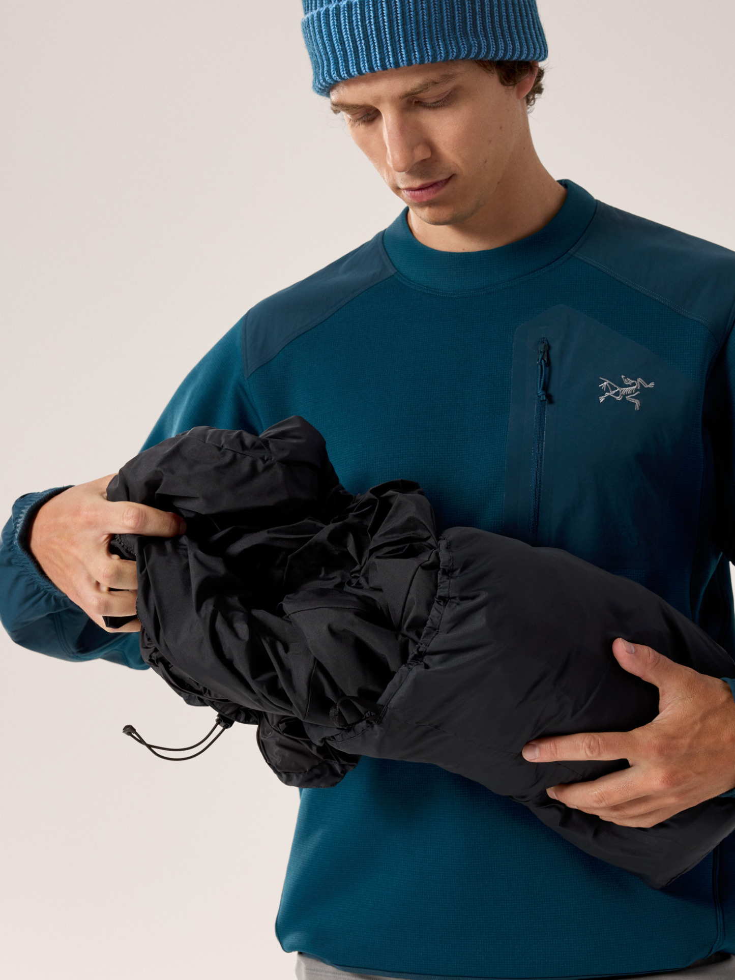 There's cold, and there's severe cold. Thorium SV Hoody – our warmest Thorium hoody – is built for the places winter lows get extreme. Constructed with oversized box-wall baffles to eliminate cold spots and maximize loft, it's packed with European grey goose down for efficient, effective warmth. Breathable 80D 2L ePE GORE-TEX overlays on the shoulders and insulated hood cut the chill and repel light precipitation, and Coreloft™ synthetic insulation warms areas prone to moisture.